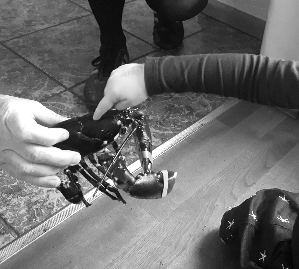 Tot ik een paar jaar geleden in gesprek kwam met J&C, dierbare vrienden van mijn ouders al van voor mijn bestaan en dus inmiddels bonusfamilie. We bleken allemaal erg van kreeft te houden, maar nooit het lef te hebben gehad ze zelf te maken, terwijl we dat eigenlijk wel hypocriet vonden, maar als we ze dan zouden maken moesten het wel goede kreeften zijn… Enfin, we maakten een kreeft-date – zo stond het destijds in mijn agenda en zo leeft het nog altijd in mijn geheugen. J en ik verdiepten ons in kreeft, wisselden recepturen en methodes uit en stapten vervolgens op een mooie zaterdagochtend vroeg in de auto op weg naar Zeeland voor de mooiste en meest verse Oosterscheldekreeften die we konden vinden. Ze waren prachtig diepzwart en klapten levendig met hun staarten. Vitale kreeften. Kleine L., toen een jaar of twee, vond ze razend interessant, maakte onbevangen een praatje met de beesten, aaide ze even over hun schild en at ze even later ook nog lekker op. En we kookten ze dus écht zelf, die kreeften, en maakten er aardappelen, asperges en salade van lamsoor en tomaat bij. Bisque vooraf, pannacotta na – een heerlijk diner.
