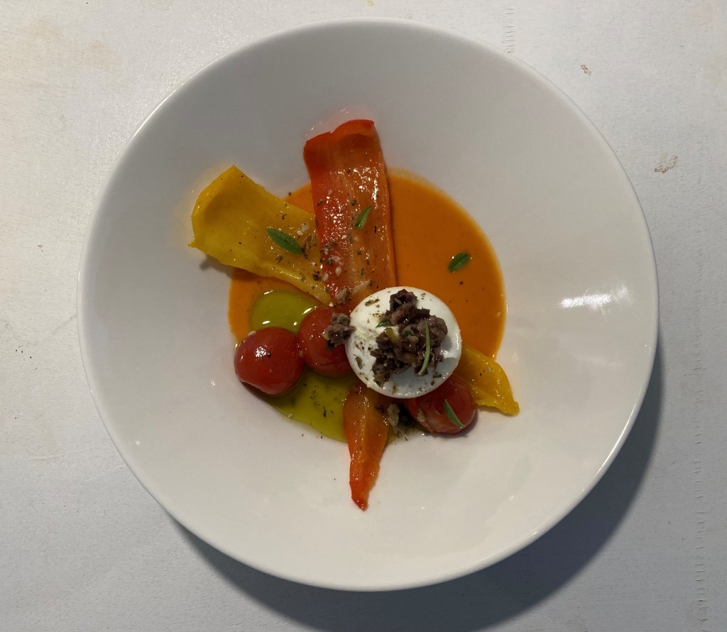 Ik kreeg het thema verbinding mee en zocht allerlei manieren om dat thema te verwerken: de vorm van het eten, dierbare herinneringen, culinaire gewoontes, verbondenheid met vrienden, de wijnboer of mijn stad en the science of cooking. Ik liet me dit keer onder andere inspireren door Sergio Herman en Ottolenghi met zijn Nopi en Sweet, sloeg aan het experimenteren met de sous-vide en aan het einde van de rit stond dit op tafel.