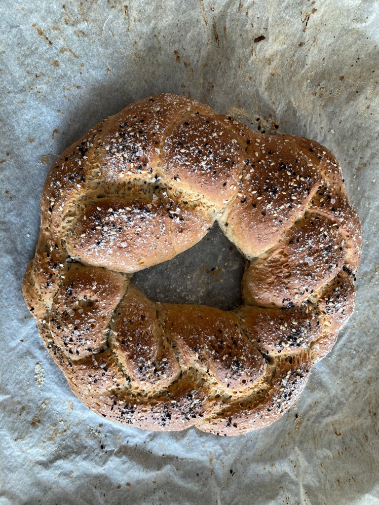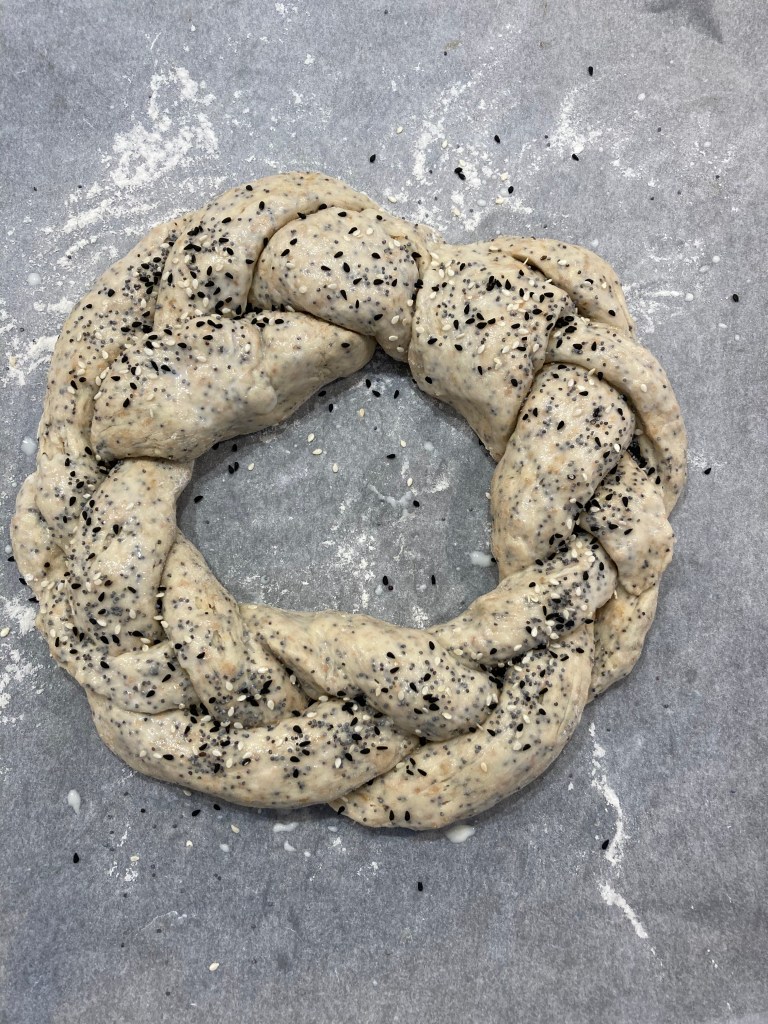 Een rond vlechtbrood, Jordanese balletjes, komkommersoep met ingelegde zalm (zelf gedaan, bleek niks moeilijks aan), burrata met gekonfijte groenten (sous-vide!), een spoom van watermeloen, pastilla met kip, een kleine kaasplank en een dessert met panna cotta van yoghurt, gemarineerde sinaasappel en ijs van walnoten en chique Sidr honing uit het Midden-Oosten. De crème anglaise voor het ijs maakte ik ook in de sous-vide (dat werkte geweldig) en toen ik nog een beetje tijd over had, bakte ik er nog even een kaneeloublie bij. Tjonge wat was het lekker. Toen ik iedereen had uitgezwaaid wachtte me, ondanks de goede planning en het bijhouden van de vaat, een aanrecht vol vieze glazen, borden en bestek. Zelfs daar werd ik gelukkig van en ik ruimde op m’n gemak nog een uurtje op. Eindelijk eetclub!