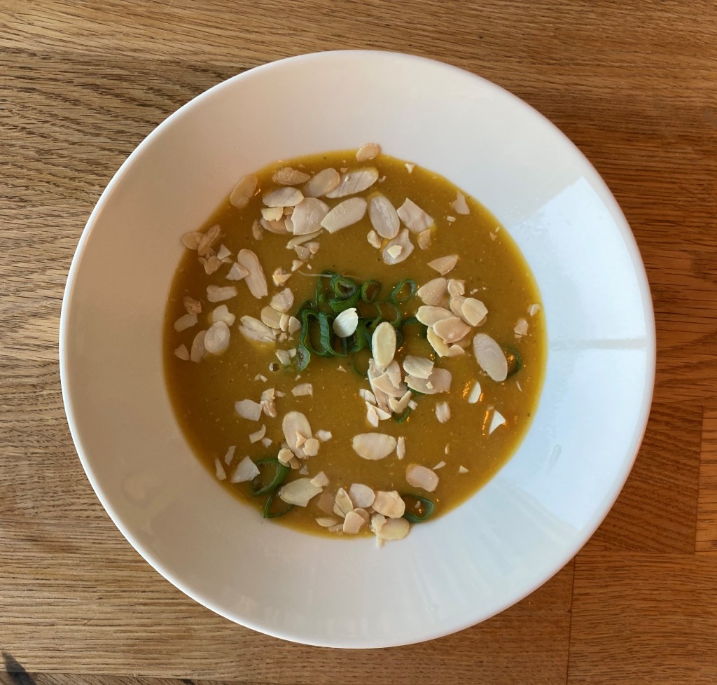 Ik gebruik overigens een stuk gember zo groot als mijn duim en een halve theelepel chili als kleine L. mee eet. Of ik maak het toch lekker pittig en roer op het laatst wat room of yoghurt door haar schaaltje soep.