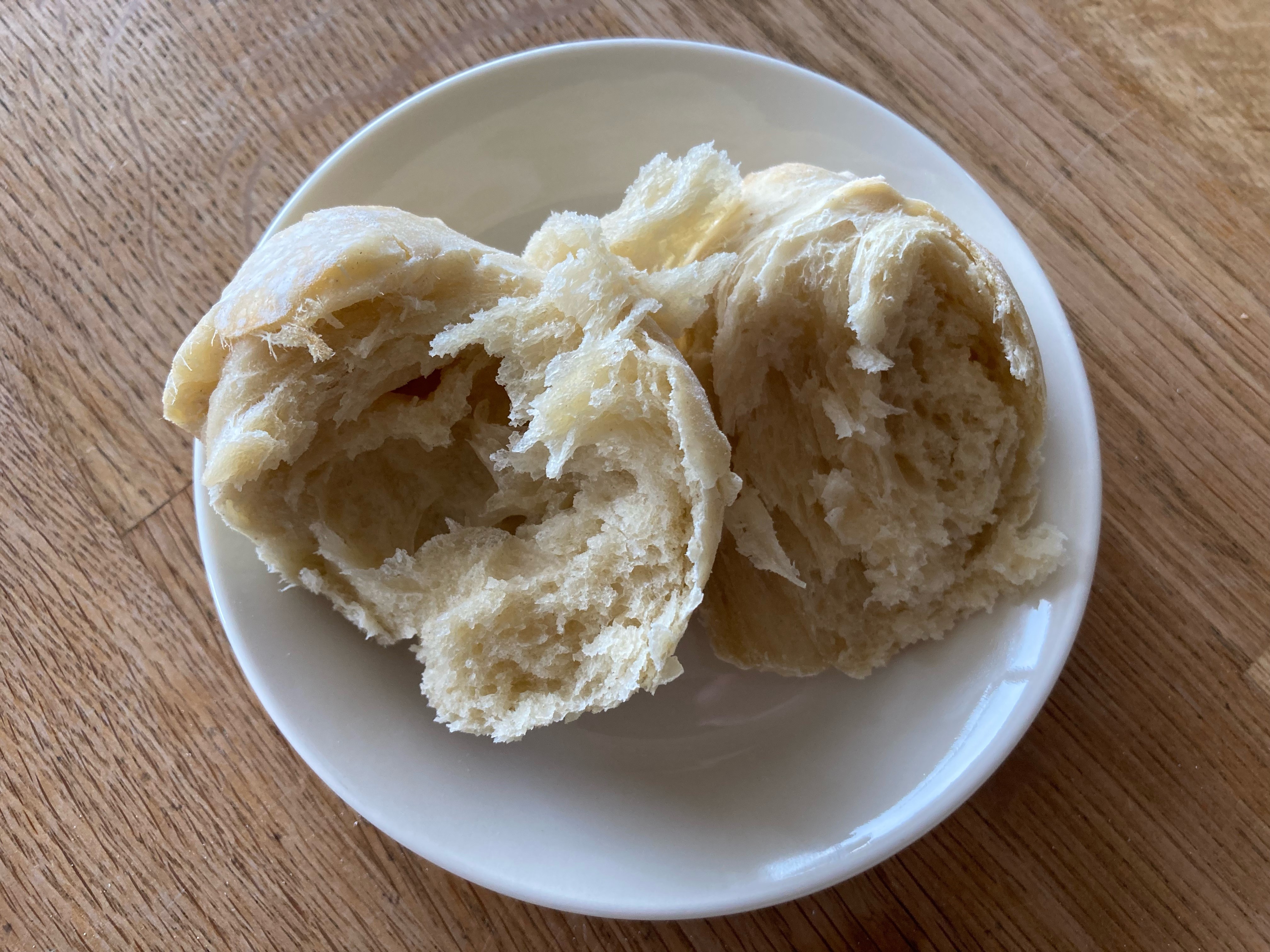 Dit recept is voor zes broden, als we met z’n drieën eten maak ik een half recept. Ik heb het deeg dat niet op was gegaan dus enkele dagen goed afgesloten in de koelkast bewaard, het een paar uur voor het bakken uit de koelkast gehaald en er kleine broodjes van gebakken (20 minuten op 200°C). Dat werkte verrassend goed en was erg lekker!