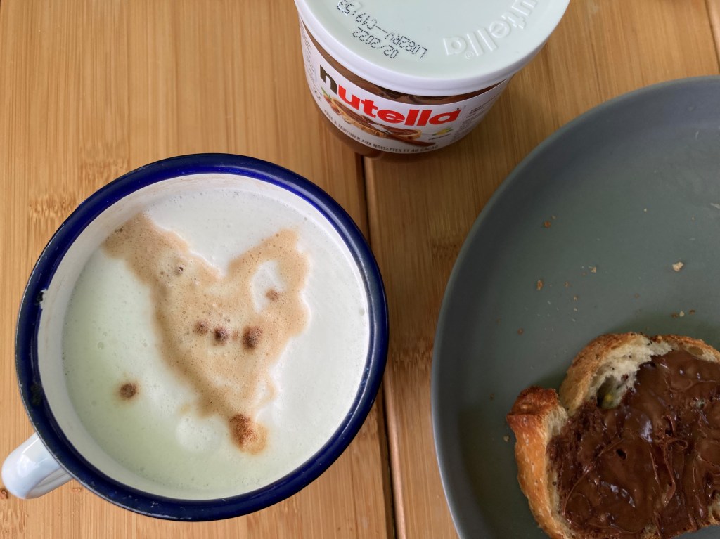 Vijfentwintig jaar geleden maakte ik in datzelfde pannetje op datzelfde gasje al couscous met avocado, tomaten en lamsworstjes. Nog altijd maak ik allerlei soorten couscous, maar ook gerust zalm met venkel, wentelteefjes van een restje rozijnenbrood, eicurry, groenteomelet of pasta met verse tonijn en citroen. Echtgenoot J. experimenteerde dit jaar met een cappuccino met een hartje. We proberen gewoon van alles uit.