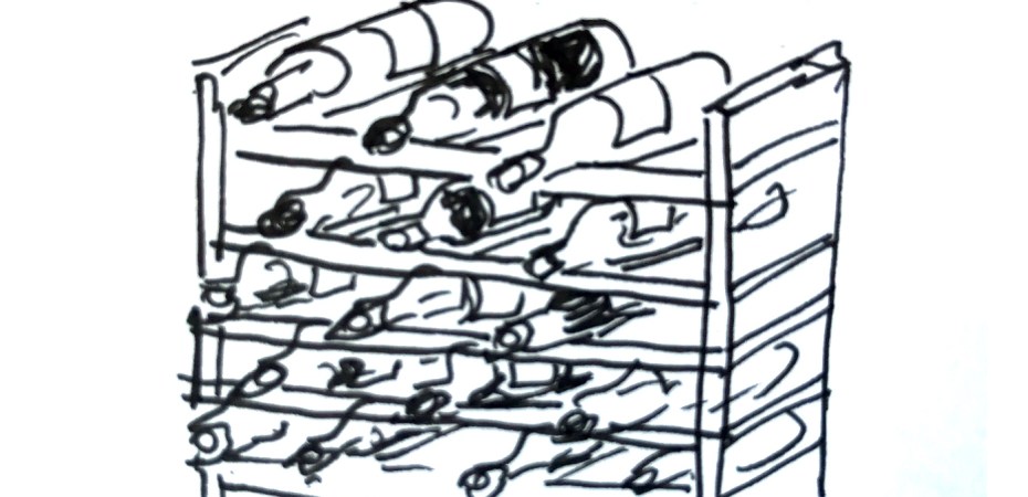 En zo kun je op veel verschillende manieren – afhankelijk van je drinktempo, de plek waar je je wijn kunt bewaren en het aantal vrienden dat je uitnodigt – al snel wat kennis en een kleine verzameling opbouwen. Na dat kleine rekje in de keuken, verhuisde mijn verzameling naar een iets groter rekje in mijn kledingkast (de slaapkamer was kouder dan de keuken) en daarna naar nog weer een iets groter rekje in de berging. Mijn verzameling zit voor het grootste deel in mijn hoofd en ligt in het rek op land of streek. Op de fles houd ik bij tot wanneer de wijn te drinken is en van wie ik hem hebt gekregen met een ordinair stuk afplakband en een stift. Zo etiketteer ik het wijnrek ook; je verplaatst dat stuk tape gewoon als je ineens meer wijnen uit een bepaalde streek hebt en een extra rijtje nodig hebt. Ik ken mensen die hun verzameling bijhouden in een wijnapp of in een Excel bestandje. Dat laatste heb ik ook ooit gedaan, maar dan moet je het ook bijhouden als je een fles weghaalt en dat doe ik dan weer niet.