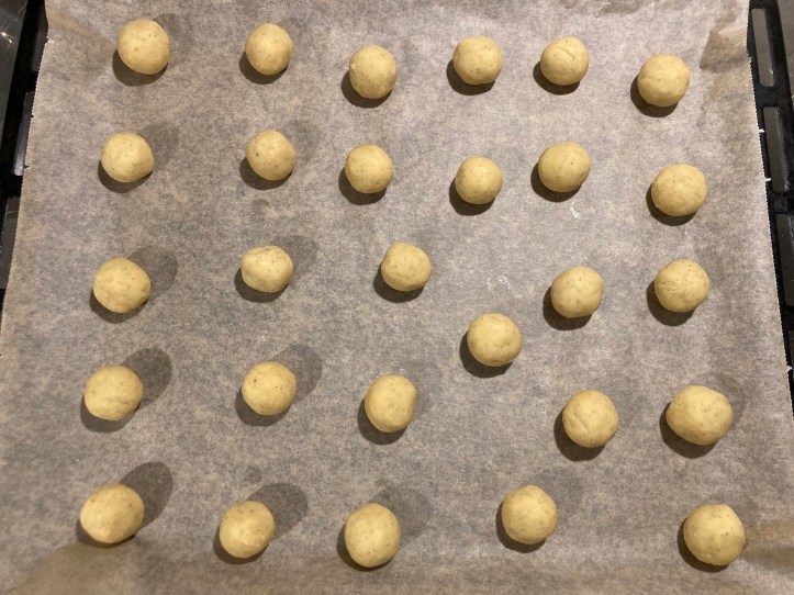 Verwarm de oven voor op 180°C. Vorm balletjes ter grootte van een walnoot (ik gebruik een kleine ijstang en rol ze nog even tussen mijn handen) en leg ze op een bakblik. Bak ongeveer 20 minuten tot ze goudbruin zijn.