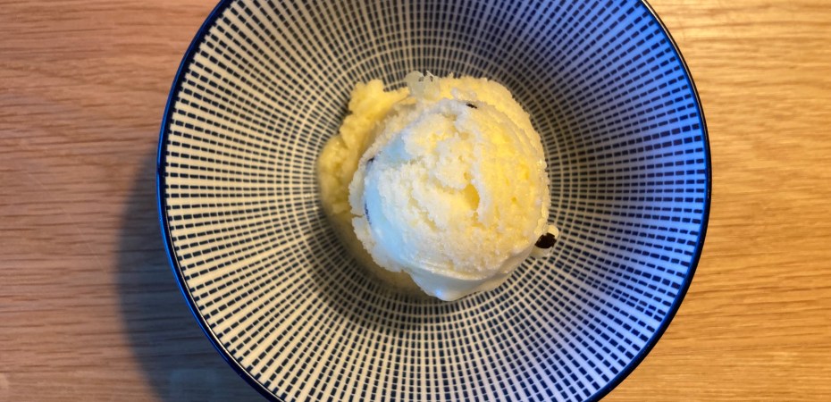 Weeg het schoongemaakte fruit en weeg vervolgens eenzelfde hoeveelheid suikerstroop af. Een goede richtlijn voor vier personen (ook passend bij de hoeveelheid eiwit) is 300 gram. Doe fruit, suikerwater en eiwit in een maatbeker en pureer. Draai er ijs van in je ijsmachine of schep in ijslolly-vormpjes en zet in de diepvries. Je ijs krijgt dan wel grovere ijskristallen.