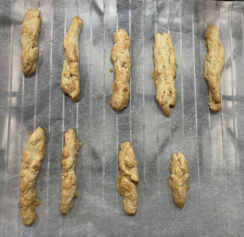 Maar vanaf toen ging het mis, iets met kinderfeestjes, filmafspraken, overwerk, een fietsongeluk en weekendjes weg. Ineens zou de VRIJ-BO met z’n tweeën zijn, er was ’s avonds nog een afspraak gepland, we werden tussendoor ook nog uitgenodigd voor een borrel en er zat weer zo’n vermaledijde bloemkool in de groentetas. Dus terwijl echtgenoot J zijn werk afmaakte en kleine L feest vierde, stond ik naar die bloemkool te staren en in gedachten te mopperen op ons prachtige plan dat in week 3 alweer strandde. En toen kwam er toch nog iets lekkers uit (met dank aan Georgina Hayden). Ik haalde er wat charcuterie, een nootje en een klein kaasje bij, kneedde wat parmezaan door een restje korstdeeg en maakte er stengels van (het moest nu wel iets groots worden vanwege de beperkte tijd). Het werd een heel rustig, lief en lekker borreltje en petit comité. Precies goed eigenlijk. Want ach, het gewone leven bestaat nu eenmaal uit feestjes, ongelukken, overwerk en filmafspraken. Op naar de volgende VRIJ-BO! Ik zie dan wel weer wie er aanschuift.