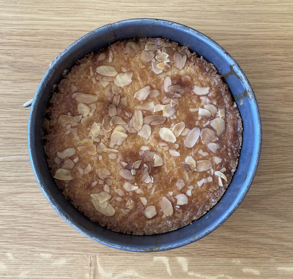 En dat dan de hele dag. En het herstel duurde nog lang ook, dus koken zat er ook al niet in. Tot ik op kraamvisite moest en de verse vader ‘boterkoek’ antwoordde op de vraag waar ik hen blij mee kon maken. Ik bedoelde een rompertje of een prentenboek, maar een verse boterkoek was natuurlijk een veel beter idee. En bij Hubert en Marjolijn vroeger in het restaurant heb ik er wel 100 gemaakt (en alle kantjes opgegeten – die waren niet mooi genoeg voor de gasten, maar vond ik het allerlekkerst). Ik had dus ook nog een goed recept tot mijn beschikking, alleen helaas ook slechts één hand. Ik besloot heel veel tijd te nemen en het gewoon te proberen met links. Het werd een enorme kliederboel, maar het lukte! En het was lekker.