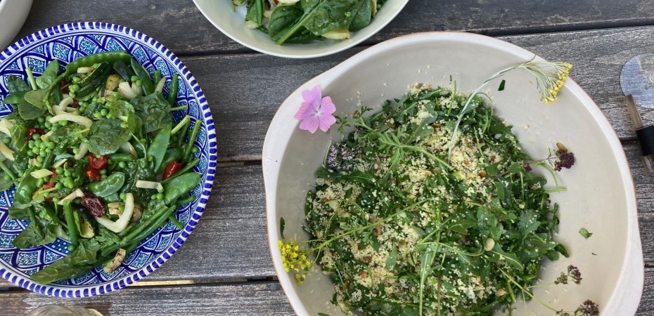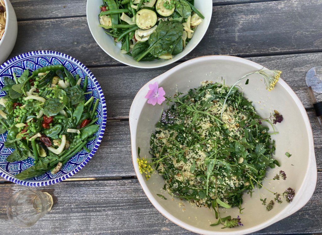 Echtgenoot J was jarig en wilde voor het eerst in lange tijd weer eens een echt feestje met een groep mensen in de tuin. Een verjaardags-apéro! Hij zou zorgen voor chips, bier, fris, kaas en brood; ik voor wijn, crudités en salades, samen met de Wijnzuster.